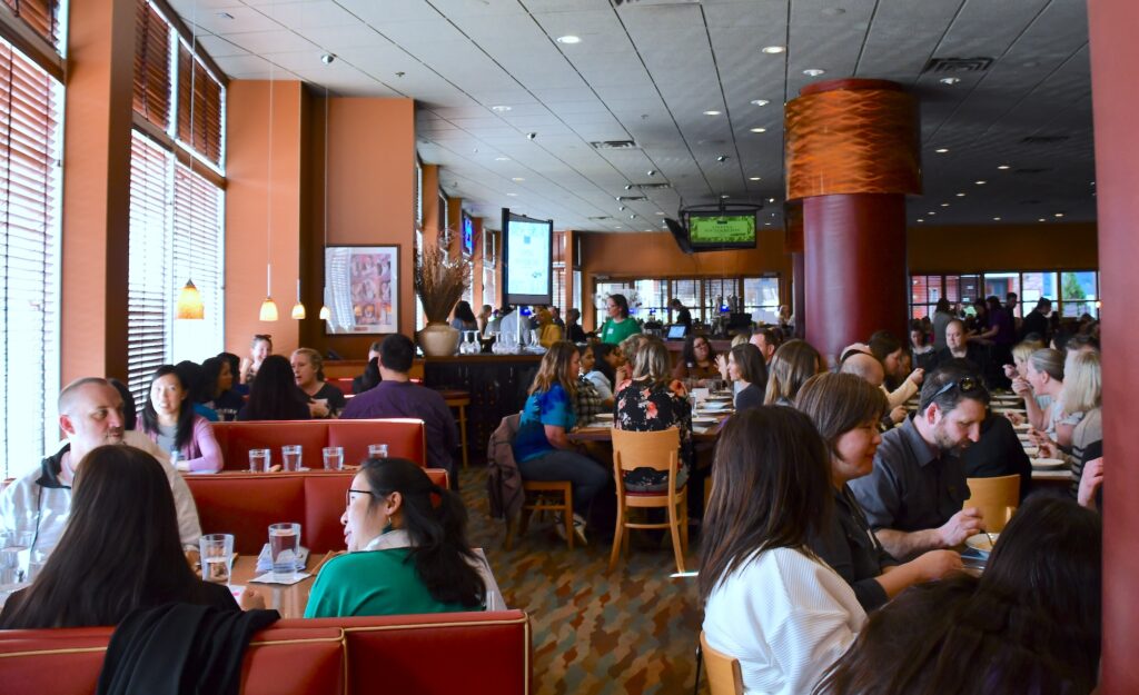 Copyright notice: Event photographs by Heather Wong, Colleen McCloskey and Carol Lugtu on February 28, 2025, at Matts’ Rotisserie and Oyster Lounge (Redmond, Wash.). Video stills captured from Hria Karthikeyan’s “The Beauty of Imperfection” (2024) and Preema Desai’s “Embrace Life With Challenges” (2024). Images may not be reused for promotional or commercial use except as permitted by content owners (LWPTSA Council, photographer and/or artist). All rights reserved.